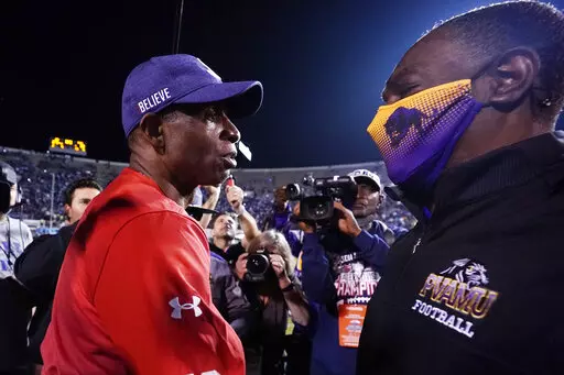 FILE - Secretary of State Colin Powell looks on as President Bush addresses State Department employees at the State Department in Washington, on Feb. 15, 2001. Powell, who died Oct. 18, 2021, was a trailblazing soldier and diplomat. (AP Photo/Kenneth Lambert, File)