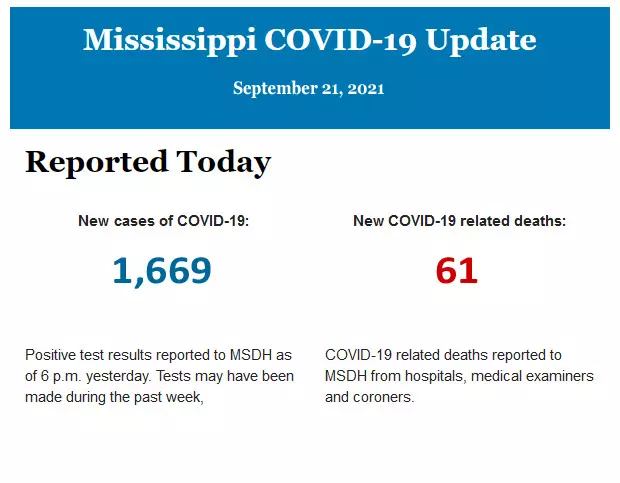 Listed below is the daily COVID-19 update for the state of Mississippi.