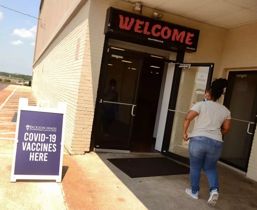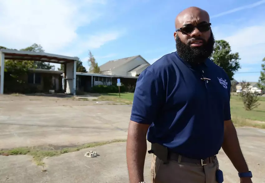 Byron Stribling of Belzoni, at the former Humphreys County Memorial Hospital, Tuesday, October 27, 2021. Stribling lost his wife and unborn child to a medical emergency earlier this year in July. Humphreys County Memorial closed in 2013. Credit: Vickie D. King/Mississippi Today