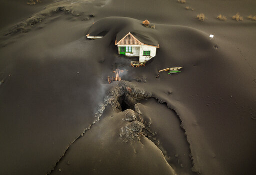 Local residents take part in a procession carrying a replica of the Our Lady of the Torrents, a virgin historically associated with drought, in l'Espunyola, north of Barcelona, Spain, Sunday, March 26, 2023. Farmers and parishioners gathered Sunday at the small hermitage of l'Espunyola, a rural village in Catalonia, to attend a mass asking the local virgin Our Lady of the Torrents for rain. Prayers and hymns were offered to ask for divine intervention in solving the earthly crisis. (AP Photo/Emilio Morenatti)