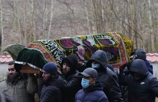 People walk through Red Square after sunset in Moscow, Russia, on March 3, 2019, with the St. Basil's left, and the Spasskaya Tower, second right, in the background. Russian technology workers are fleeing the country by the tens of thousands as the economy goes into a tailspin under pressure from international sanctions. For some countries, Russia’s loss is being seen as their potential gain and an opportunity to bring fresh expertise to their own high-tech industries. (AP Photo/Alexander Zemlianichenko, File)