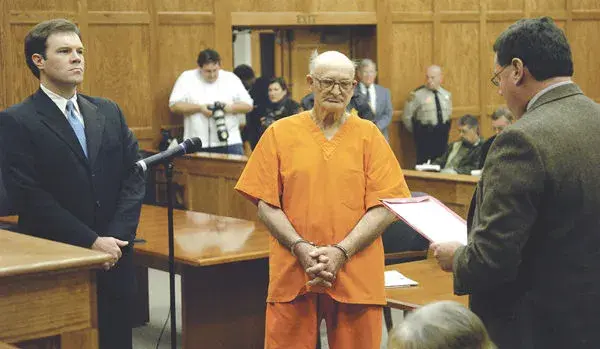 Edgar Ray Killen, center, stands as Neshoba County District Attorney Mark Duncan, right, reads the indictment charging him with murder in the 1964 slayings of three civil rights workers in Philadelphia on Jan. 7, 2005. Public defender Chris Collins is at left. Later in 2005, the former Ku Klux Klansman and one-time Baptist preacher was convicted of manslaughter in the killings of James Chaney, Andrew Goodman and Michael Schwerner.