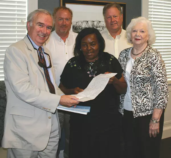Willie Mae Lewis, center, receives the deed to her house, which