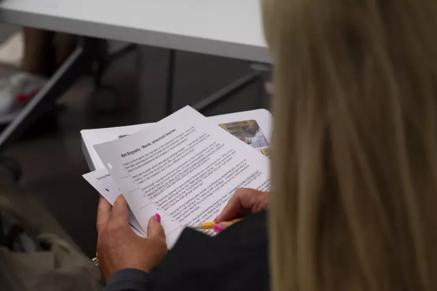 Kneeling from left, Capt. Lawrence Clowry, firefighter Roger Davis and Capt. Matt Bennison bow their heads in prayer at the Travis Maher 9/11 Memorial Stair Climb at the Pleasant Valley Drill Tower in Austin, Texas, on Monday. (By The Associated Press)