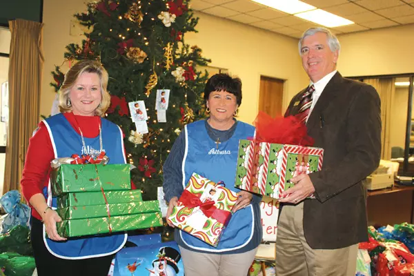 The Angel Tree program, sponsored by Altrusa International, the Salvation Army and CB&S Bank, will adopt needy children for sponsorship with Christmas gifts. Angels may be adopted between Monday and Dec. 12, at CB&S Bank located at 820 W. Park Ave. Pictured, from left, are Angel Tree Co-chairmen Pat Gulledge and Virginia Brewer and CB&S President Charles Wright.