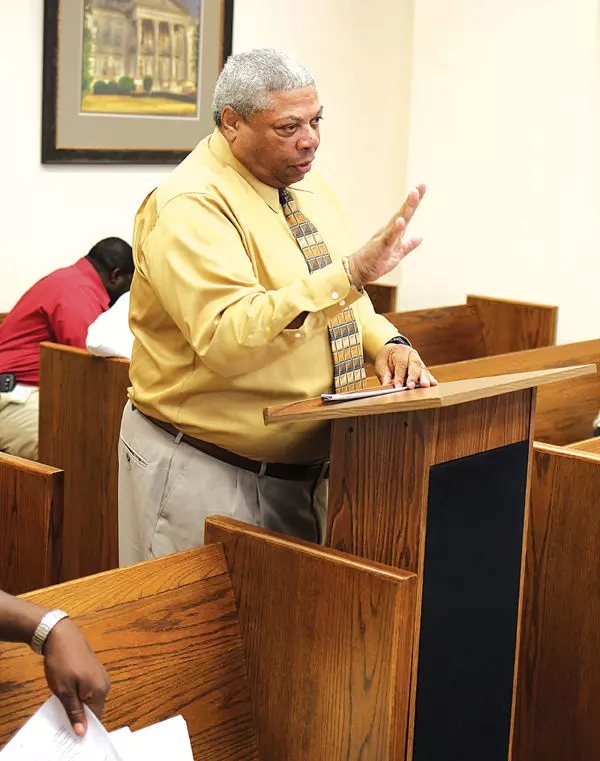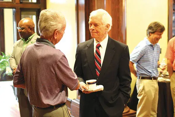 U.S. Sen. Thad Cochran, R-Miss., speaks with Mickey Black during a coffee reception at the historic Elks Lodge in downtown Greenwood Monday morning. Cochran, who is campaigning for a seventh term, also visited the Milwaukee Electric Tool plant and had lunch with the Greenwood Rotary Club during his stop here Monday.