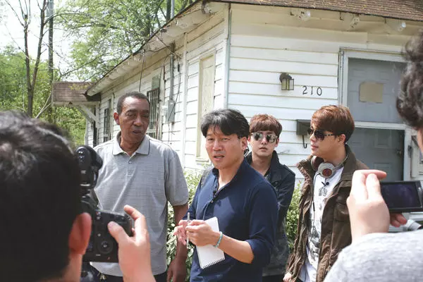 Greenwood’s Sylvester Hoover, left, speaks with the cast of a South Korean television documentary crew who visited Greenwood as part of the filming of a series of eight episodes tracing the roots of American music for “SBS Culture Club,” a program on South Korean broadcaster SBS. With Hoover are, from left, Prof. Cho Hyun-Jin and South Korean professional musicians Shin Ji-Ho and Jin Jung-Hoon.