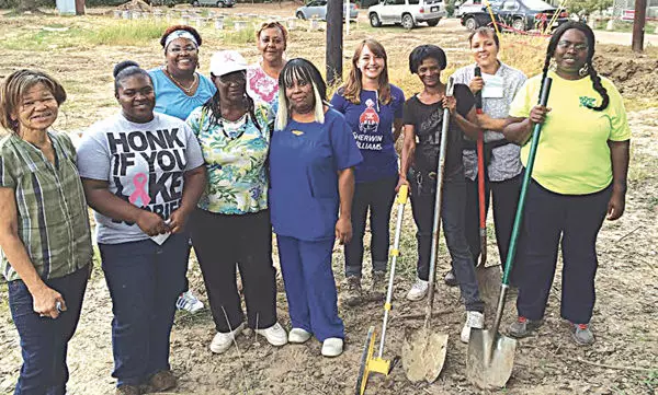 A group of local women, the Ladies in the Landscape, set to work last week to build a storm water garden in Baptist Town, learn more about landscaping and pick up a few more job skills along the way. Pictured are, from left, Sandra Russel, Myesha Cole, Denetra Ware, Bessie Scott, Agaphene Robinson, Timitra Jones, Emily Roush Elliott, Carolyn Williams, Elaine Gosa and Cassandra Howard.