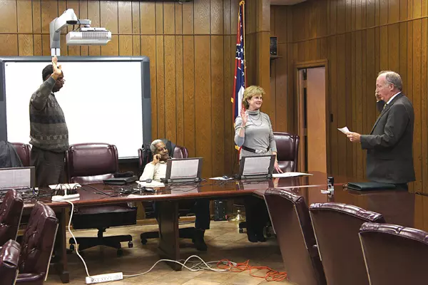 Board Attorney Richard Oakes administered the oath of office to Bill Clay and Kathy Whicker at the central office.
