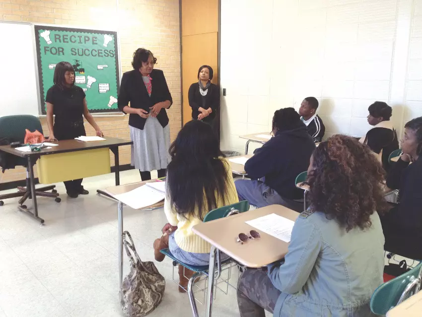 Dr. Theresa Dumas, center, addresses her class at Mississippi Valley State University on Tuesday about the upcoming RAMP program at the Greenwood-Leflore Public Library. Dumas is working alongside Barbra Gulf, left, youth specialist at the library to put together this early education program for local public school students. Both Dumas and Dr. Kalanya Moore, right, have worked with these early education majors to prepare them for real-world experience. According to them, this is about as real as it gets before they graduate.