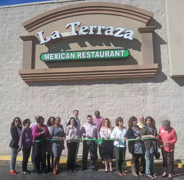 Mitch RobinsonRepresentatives of the Greenwood-Leflore County Chamber of Commerce attend La Terraza Mexican restaurant’s reopening following its remodeling and menu makeover. In front, from left, are Gauri Chawla, Rekha Mehta, Gloria St. Clair, Betty Shaw, Dorothy Robertson, Leonel Perez, Blanka Camerena, Debbie Noah, Judy Nail, Kathy Manning and Rhonda Drummond. In back row, from left, are J.P. Walker, Bennie Boles and Rob Spiller.