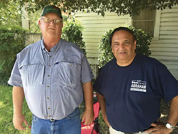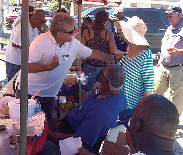Reta Holden, right, a candidate for the House District 34 seat, says this cellphone photo shows her opponent, Kevin Horan, assaulting her on Saturday in Grenada. Floyd Holland of Grenada, center in blue shirt, disputes Holden's account. Holden and Horan are meeting in today's Democratic primary.