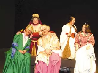 Cast members for Greenwood Little Theatre’s production of “The Cinderella Syndrome” include, from the left, Stacey Joiner, Elaine Tharpe, Steven Gray, Jessica Roberts and Ellie Aldridge. The comedic one-act play will be presented, along with Pillow Academy’s “Tracks,” Friday through Sunday as a fundraiser to purchase a new curtain and rigging for the theater.
