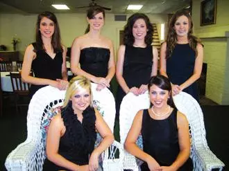 Contestants in the Greenwood Miss Hospitality Pageant, which was held Thursday afternoon at the Confederate Memorial Building, included, front row, from the left, Georgia Hart Smith and Sarah Steele Jennings, winner; back row, Elizabeth Sillers Pearson, Mary Lawson Barlow, runner-up, Mary Steele Flautt and Noelle Barrett. Photo by Rachel Hodge.