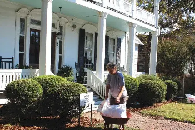 Mary Gee of Carrollton works in her yard to get it ready for Pilgrimage. The Gee house, which is known as The Bingham House, is not being shown this year, but like most Carrollton residents, Gee wants it to look good for the those who will view it as part of seeing the "quintessential 19th-century town."