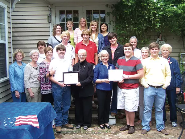 On the back steps of historic Hayne Hall in Carrollton are members of the Douglas Carroll Junior American Citizens Club, also known as the Carroll Academy Student Council, and members of Third Arrow Chapter of Daughters of the American Revolution. The group was awarded first- place awards in Mississippi and the Southeast for their community service project, “Enhance the Present.” First row, from left, are: Nancy Alderman, Mary Bennett, Glenda Jones, Jamie Williams, sponsor Elizabeth Wilson, Junior American Citizens State Chairman Victoria Pekich, Parker Weems, Mary Morgan, Joe Kelley Whitfield and Barbara Williamson; second row, Trey Taylor, Will Ratliff, Hayden Harrell, Jonathan Ainsworth and CA Headmaster Steve Flemming; third row, Cassie Taylor, Brooke Howell, Memrie Corley, Haley Liddell and Nancy Yu.