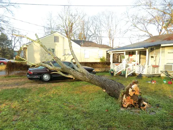A tree fell on top of Greenwood resident Barbara Barrett’s car, which was parked outside of her home at 402 West Jeff Davis Ave. during Thursday’s turbulent wind. Barrett’s nephew, Bobby Musgrove of Philipp, came to his aunt’s house to survey the damage. “The root system is dead,” he said, explaining why the tree loosened easily. When asked what he plans to do to remove the cumbersome limbs, Musgrove smiled and pointed to a chainsaw lying in the grass. He said an insurance representative would be by later to assess the damage.