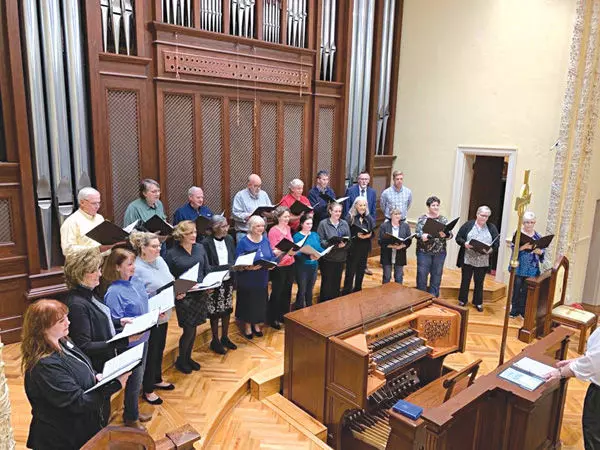 Susan MontgomeryThe Greenwood Chorale practices for its Tuesday night performance. Among its members are, at the front from left, Vickie Flannery, Alice Barth, Cathy Barnes, Freda MacIntosh, Melanie Bowman, Rachael Pitts, Susie Thomas, Giulianna Gray, Jordan Messick, Erin Stagner, Judith Brown, Christie Beattie, Emily Shafer, Camille Branton and Denise Gardner. At the rear from left are Randy Clark, Ted MacIntosh, Ralph Petty, Buddy Hendricks, Bobby Brown, Doyle Tubbs, Ray Smithee and Forrest Hodge.