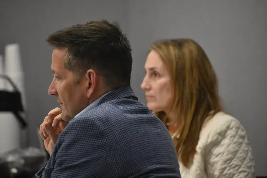 Chip Morgan, right, a former member of Mississippi’s College Board, talks with Pam Powers after his presentation to the Greenwood Rotary Club Wednesday. In the background are Kathy Manning, center, and Jean Cadney.(By Tim Kalich, Copyright 2024 Emmerich Newspapers, Inc.)