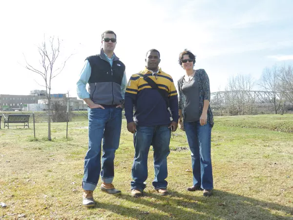 Greenwood Chief Administrative Officer Thomas Gregory, left, takes landscape architecture student Devlon Ward, a senior at Mississippi State, on a tour of the Yazoo River Trail and the arboretum Friday. Joining them is Hart Henson, right, a major supporter of the trail project.