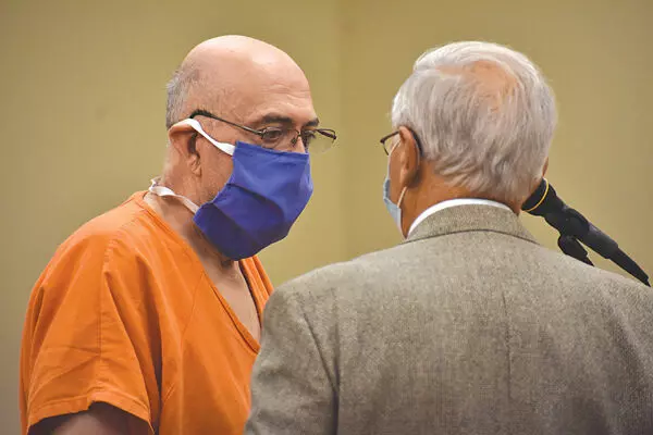 Paul West, left, confers with his court-appointed attorney, Wallie Stuckey, during a brief court appearance in Greenwood Wednesday. West, a former Franciscan friar, pleaded not guilty to charges that allege he sexually abused in the 1990s two male cousins, La Jarvis and Joshua Love, who were students at St. Francis of Assisi School in Greenwood. West worked as a teacher and later principal at the Catholic elementary school.