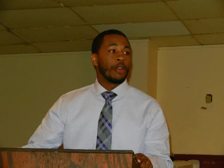 Kenderick Cox is the Democratic candidate for mayor of Greenwood in the general election. Cox, shown here speaking to the Greenwood Voters League on Wednesday night, won the primary decisively against two opponents and will face Shun Pearson and incumbent Mayor Carolyn McAdams, both independents, on June 6.