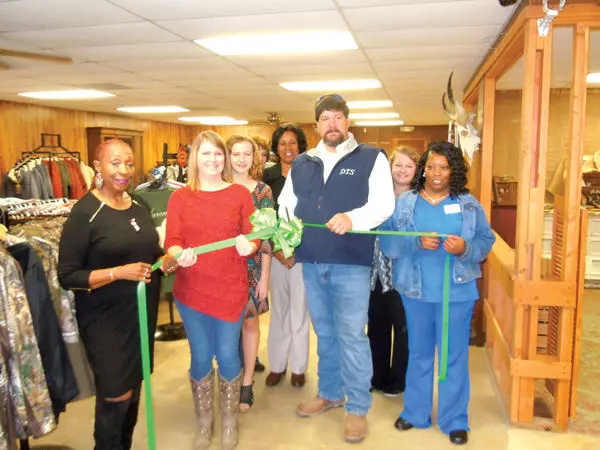 The Greenwood-Leflore County Chamber of Commerce welcomed County Line Ranch Supply to the chamber family on Tuesday with a ribbon-cutting. Pictured left to right are Dorothy Robertson, Melissa Nester, Alana Garrett, Debra Hibbler, Jim Nester, Kaitlyn Lollar and Gloria St. Clair. Melissa and Jim Nester are the owners of the business, formerly The Western Store, on U.S. 82 east of Greenwood.