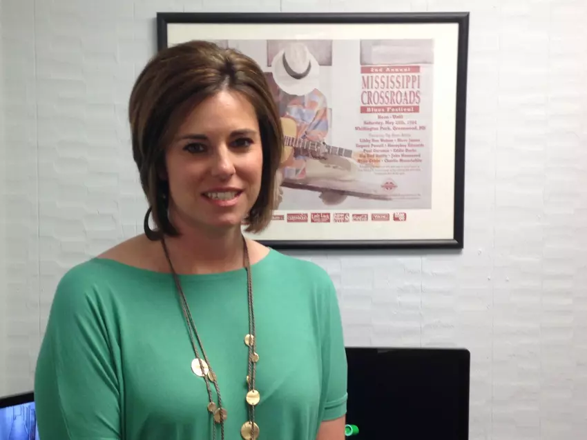 Shelley Walker, executive director of the Greenwood Convention and Visitors Bureau, is waving goodbye to the city.