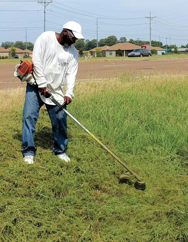 Leonard McKinnon and Bruce Hill were hard at work Friday trimming the roadsides along U.S. 82 in Greenwood in a city-led effort to beautify its entrances.