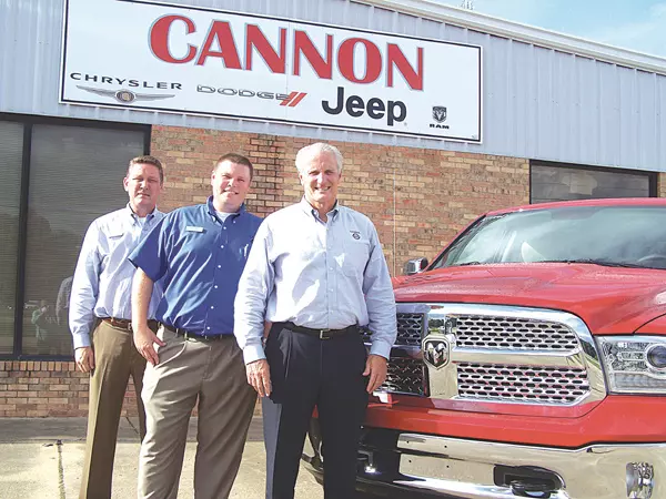 Michael Joe Cannon, right, the owner of Cannon Chrysler, Dodge, Jeep and Ram, gets ready to open the doors Monday to his new dealership, located at 70249 U.S. 82 West. Accompanying Cannon are Lance Gregory, left, general manager of Cannon Motor Co., and Brandon Hammons, parts manager of Cannon Motor Co.