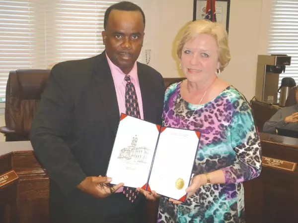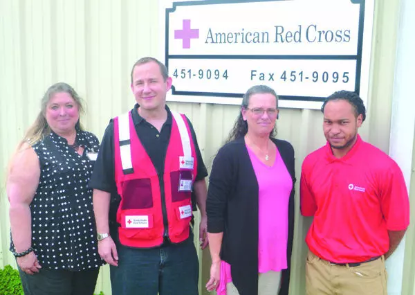 Beverly Renfroe, left, is the new volunteer at the American Red Cross office in Greenwood. On Tuesday, Red Cross officials for Northwest Mississippi visited, including Nicholas Garbacz, disaster program manager, second from left; Sandy Patrick, disaster program specialist; and James Newsome, specialist for armed forces services