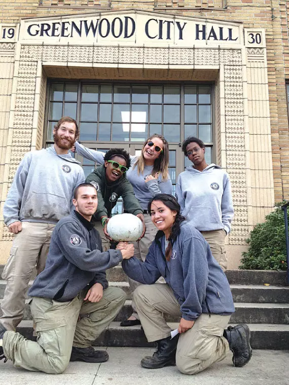 Members of AmeriCorps’ National Civilian Community Corps River 5 Team spent the last six weeks in Greenwood working on a variety of projects including the Yazoo River Trail. Clockwise from the left are Hunter Rawls, Derek Anderson, Marlisa Jemison, Lindsey Mancari, Tiffany Abney and Gracie Billingsley.