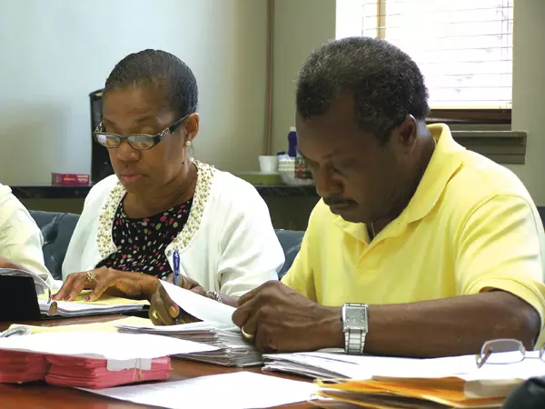 Greenwood Democratic mayoral candidate Sheriel Perkins, left, examines poll books at City Hall Monday with her husband, attorney Willie Perkins Sr. Sheriel Perkins, who lost by 206 votes in the June 4 election, has until June 26 to challenge the election results in circuit court.