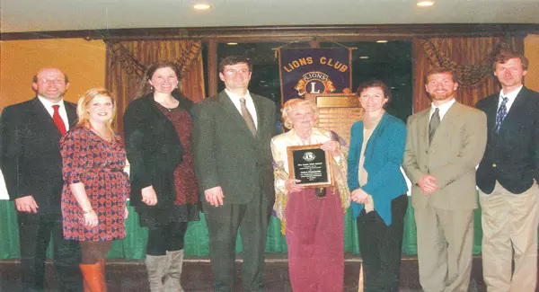 Greenwood Realtor Belva Pleasants, center, was named the Greenwood Lions Club’s Outstanding Citizen of Leflore County Thursday night at the Lions’ 73rd annual banquet at the Greenwood Country Club. From the left are Miller Arant, first vice president of the club; Rebekah Arant; Jill Hodges; Adam Hodges, club president; Pleasants; Jenny Schmitz; Jay Schmitz, second vice president; and Robert Hearn, third vice president.