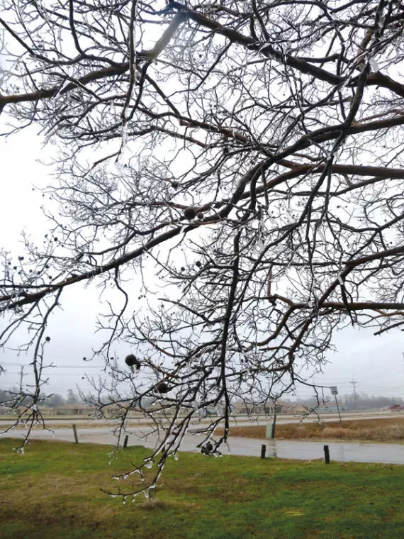 An ice storm warning was in effect for much of the Delta until 6 p.m. today.