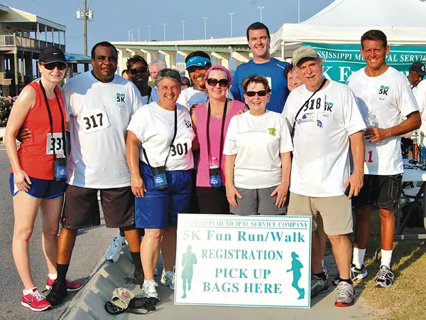 Greenwood government representatives participated in a 5K in Biloxi on Wednesday during the Mississippi Municipal League’s annual conference. From the left are Mary Annette Morgan, Gregory and Associates; Charles McCoy, Ward 4 councilman; Johnnie Mae Neal, mayor of Sidon; Susan Bailey, director of Greenwood Public Works Department; Samaria Stevenson, wife of City Council President Ronnie Stevenson; Lisa Cookston, Ward 2 councilwoman; Carolyn McAdams, mayor of Greenwood; Thomas Gregory, Greenwood chief administrative officer; Bettie Ray, McAdams’ secretary; Johnny Jennings, Ward 1 councilman; and Nick Joseph, Greenwood city clerk.