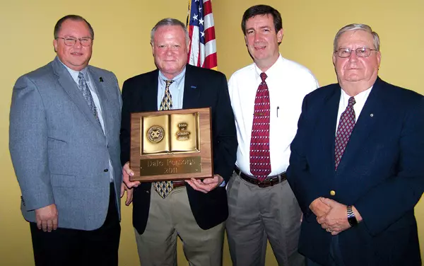 Dale Persons, second from left, is the Greenwood Exchange Club’s Book of Golden Deeds Award winner for 2011. Persons, vice president for business development with Viking Range Corp., was just named the Greenwood Lions Club Outstanding Citizen of Leflore County in February. From the left are Dr. Joe Pate, pastor of First Baptist Church of Greenwood; Persons; Barry Brewer, Exchange Club president; and Jan Verhage, Golden Deeds Committee chairman. The award was presented at the annual banquet Thursday at the Greenwood Country Club.
