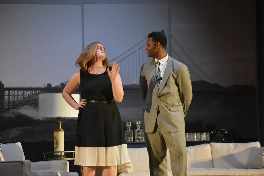 Members of the cast of Greenwood Little Theatre’s upcoming production of “Guess Who’s Coming to Dinner” include, from left, Victoria Reed, John McCall, Cyndi Long, Franklin Riley, LeAnne Gault, Forrest Hodge, Bobby VanDevender, Jackqulin Buchanan and Kyla Cole. (By Ruthie Robison, Copyright 2025 Emmerich Newspapers, Inc.)
