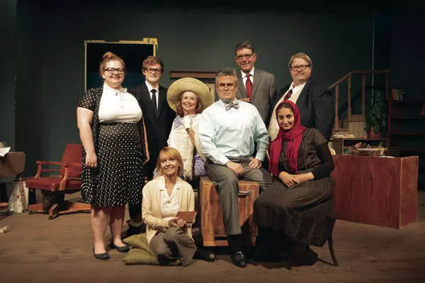 The cast of Greenwood Little Theatre’s upcoming production “84, Charing Cross Road” includes, front row, from left, Murphy Moxley, Connie Black, David Dallas and Nada Aziz; back row, Evan Lindsey, Cheryl Weiss, Bob Draper and Seth Wheatley. The play will open Thursday evening.