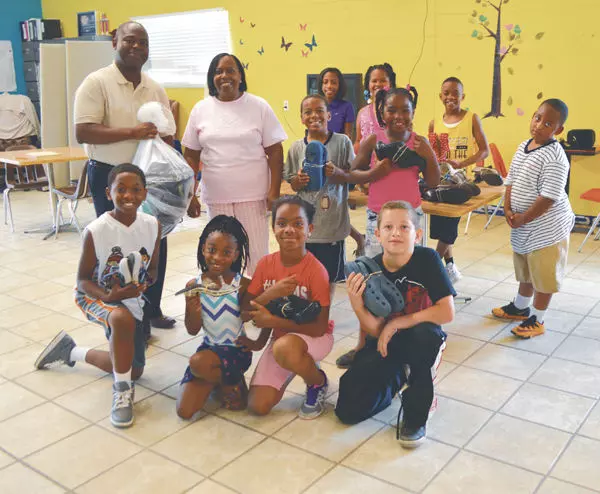 fundraiser until July 31, and several in the community have been dropping off bags of used shoes at the club. Kenneth McClung, far left, presents a bag of donated shoes to Unit Director Deloris Davis. Also pictured are, front row, from left, William Thompson, Carrington Toole, Emerie Journey and Kevin Favela; middle row, Malcolm Butler, Tymara Amos and Kenneth McClung Jr.; back row, Samiya Walker, Makayla Harris and Janquavis Webster.