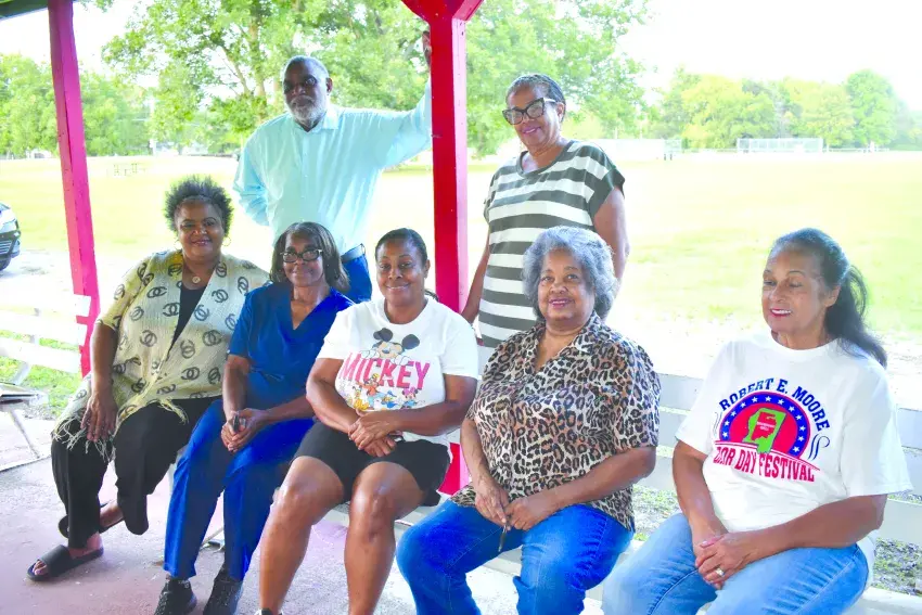 Planning for the upcoming 35th annual Robert Moore Labor Day Festival are members of the Browning Progressive Civic League, seated, from left, Niqua Graham, president emeritus; Sallie Woods; Teresa Grice; Kathleen Graham; and Margarette Fluker; standing, Leroy Ware, vice president; and Bobbie Peoples, president. Not pictured is District 2 Supervisor Reginald Moore and Dr. Kalanya Moore.