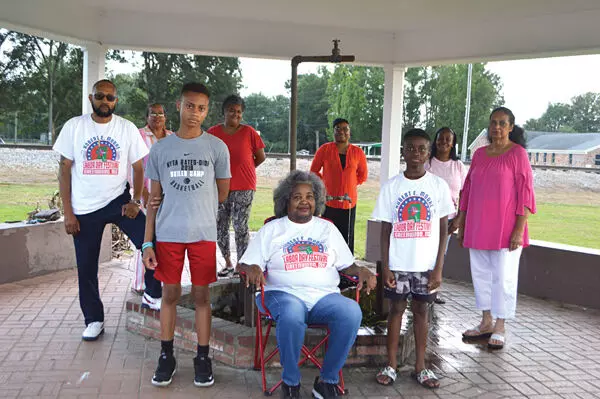 Preparing for the upcoming Labor Day Festival fish fry are, from left, Browning Progressive Civic League members Reginald Moore, Leflore County District 2 supervisor; Bobbie Peoples; Reginald Moore II; Niqua Graham-Brooks, president; Kathleen Graham; Dr. Kalanya Moore; Jordan Moore; Teresa Grice; and Margarette Fluker. Not pictured are founding members Claudine Brown, former president, and Thelma Sims. The members are pictured at the Browning community’s artesian well, which was built in the 1920s.