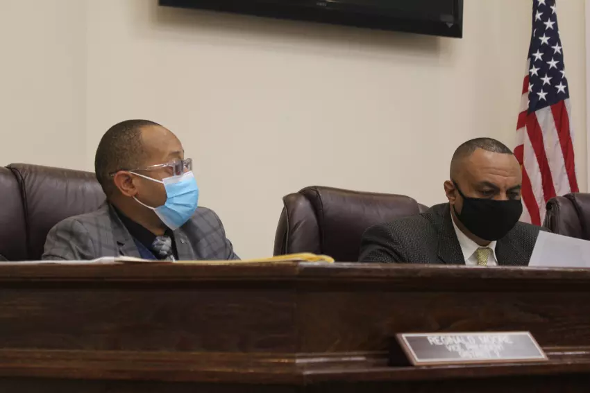 Members of the Greenwood Leflore Consolidated School Board, from left, Magdalene Abraham, Dr. Kalanya Moore, Samantha Milton, Jackie Lewis and Dr. Ro’Shaun Bailey, held elections for board officers Tuesday. Milton was chosen to again serve as the board’s president this year, and Moore was chosen to be vice president and secretary. (By Gerard Edic)