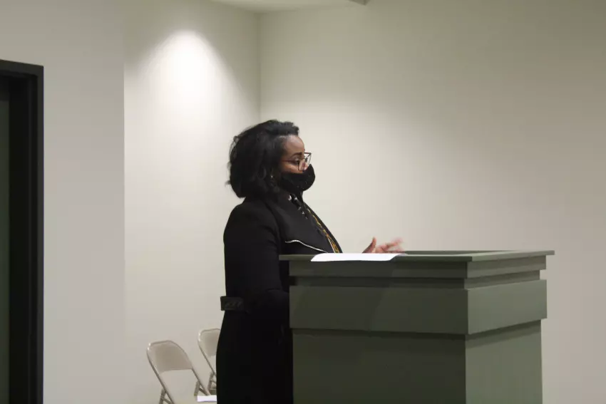 Dr. Christina Jordan, owner and CEO of a Jackson-based research lab, speaks to Itta Bena’s Board of Aldermen Tuesday about a proposed project to assess the city’s electrical infrastructure for free in order to develop solutions to fix it. (By Gerard Edic)