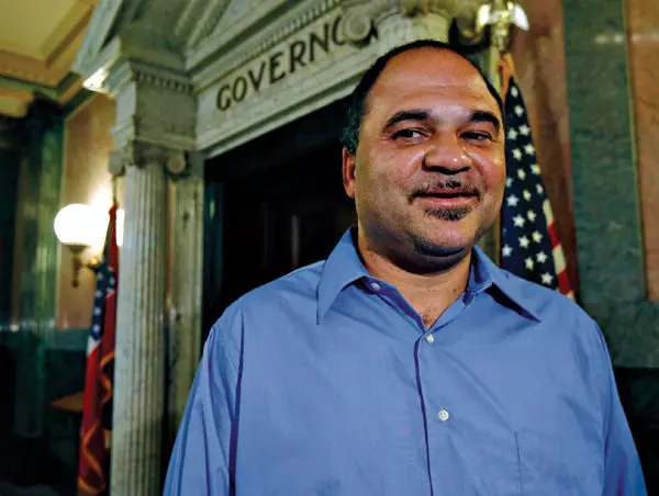 Robert Gray of Jackson, who won the Democratic primary for governor, stands outside the governor’s office during what he says was his first visit to the state Capitol in Jackson on Wednesday. Gray, a long-distance truck driver, was a surprise winner, despite spending nothing on advertising and doing a limited amount of campaigning.