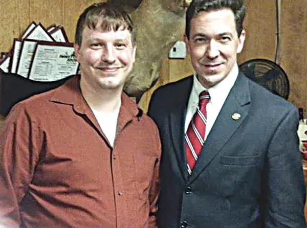 Blogger Clayton Thomas Kelly, left, is seen with state Sen. Chris McDaniel, who is challenging Mississippi’s senior U.S. senator, Thad Cochran, in the Republican primary, at a McDaniel campaign stop in this photograph from Kelly’s blog. Kelly is accused of taking an unauthorized photo of Cochran’s bedridden wife at a Madison nursing home.