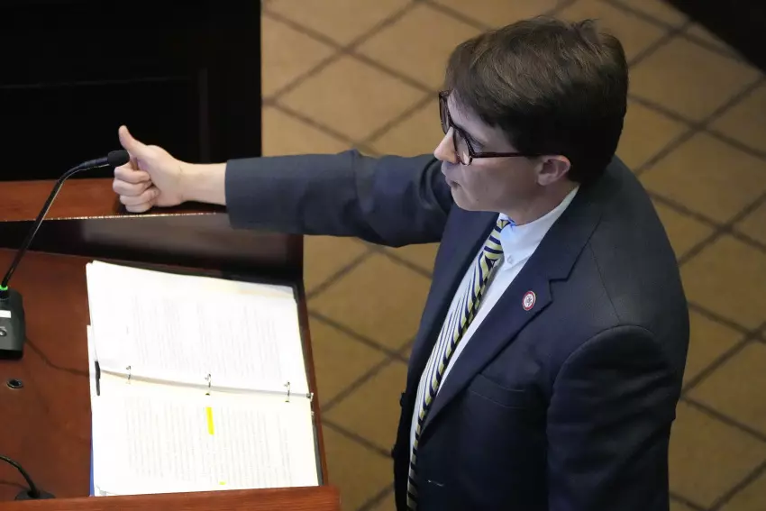 Former NFL quarterback Brett Favre speaks with reporters prior to his induction to the Mississippi Hall of Fame in Jackson, Miss., Aug. 1, 2015. Mississippi's state auditor filed court papers Monday, Feb. 5, 2024, renewing his call for Favre to repay the state for welfare money that the auditor says was improperly spent on projects backed by the retired NFL quarterback. (AP Photo/Rogelio V. Solis, File)