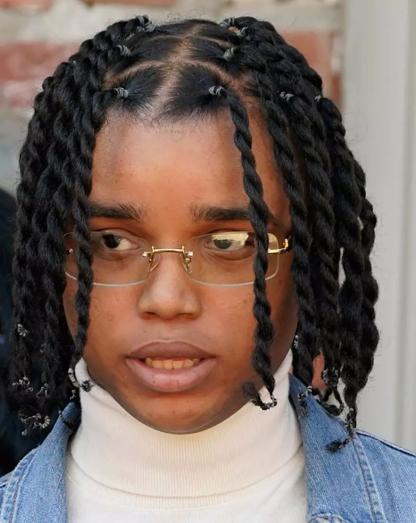 D'Monterrio Gibson speaks Thursday, Feb. 10, 2022, at a news conference in Ridgeland, Miss., about an attack he said happened days earlier while he was delivering packages for FedEx in Brookhaven, Miss. Attorney Carlos Moore, right, filed a civil lawsuit on behalf of Gibson on Nov. 20, 2023, against FedEx and against the two men who are facing criminal charges in the incident. (AP Photo/Rogelio V. Solis, File)