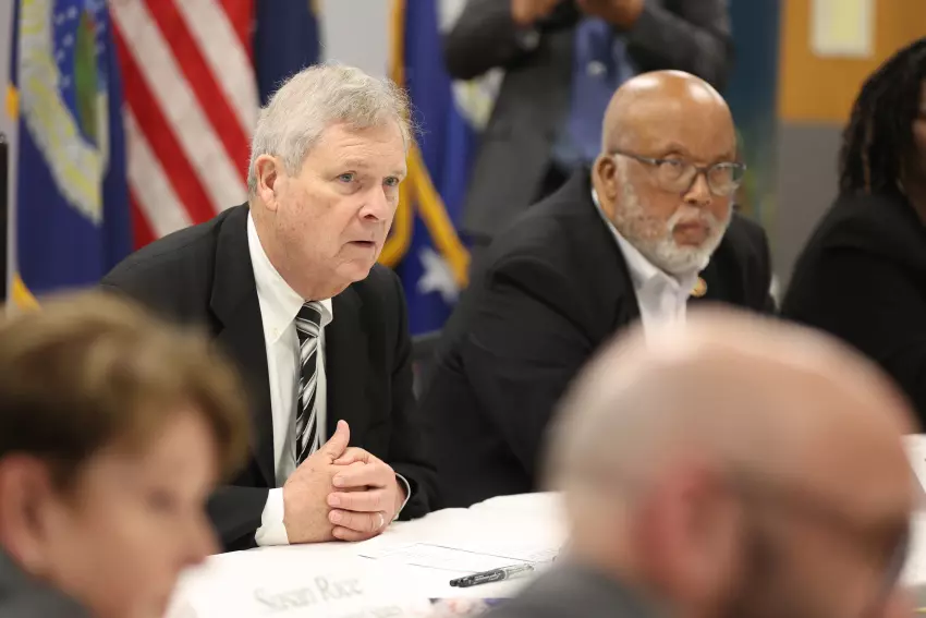 U.S. Agriculture Secretary Tom Vilsack, left, and U.S. Rep. Bennie Thompson are some of the panelists who spoke during a roundtable discussion held Wednesday at Greenwood Leflore Hospital for the announcement of the Rural Partners Network program. Vilsack also announced a $1 million grant for the Greenwood hospital. (By Andy Lo)
