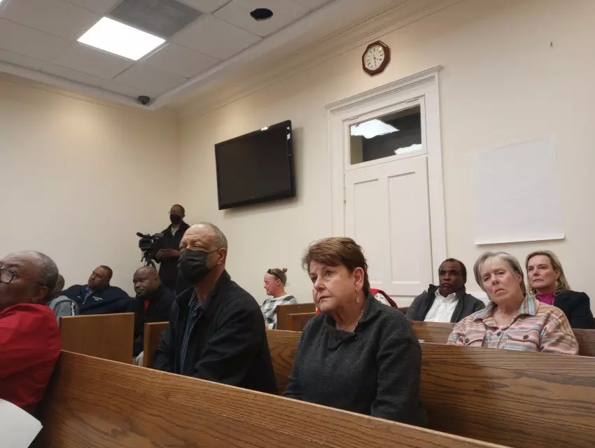 Greenwood Mayor Carolyn McAdams, center, listens to the discussion during Monday’s meeting of the Leflore County Board of Supervisors. McAdams was joined in the audience by several members of the City Council, including Carl Palmer, sitting next to the mayor. (By Katherine Parker)